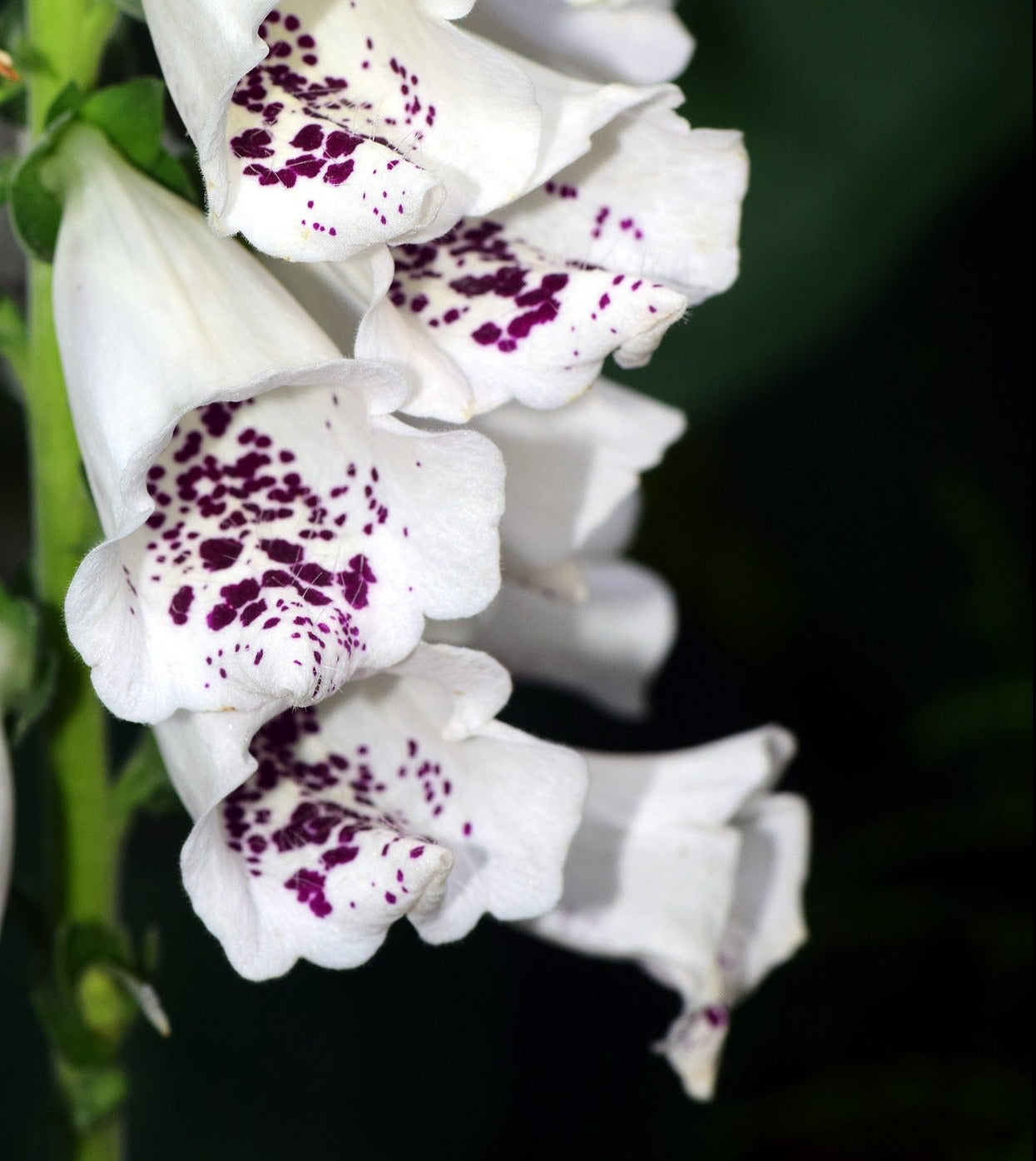 En traditionell favorit med eleganta spiror i vitt med lila prickar som attraherar bin. Ger underbar, långvarig blomning i rabatten. Självsår sig friskt.