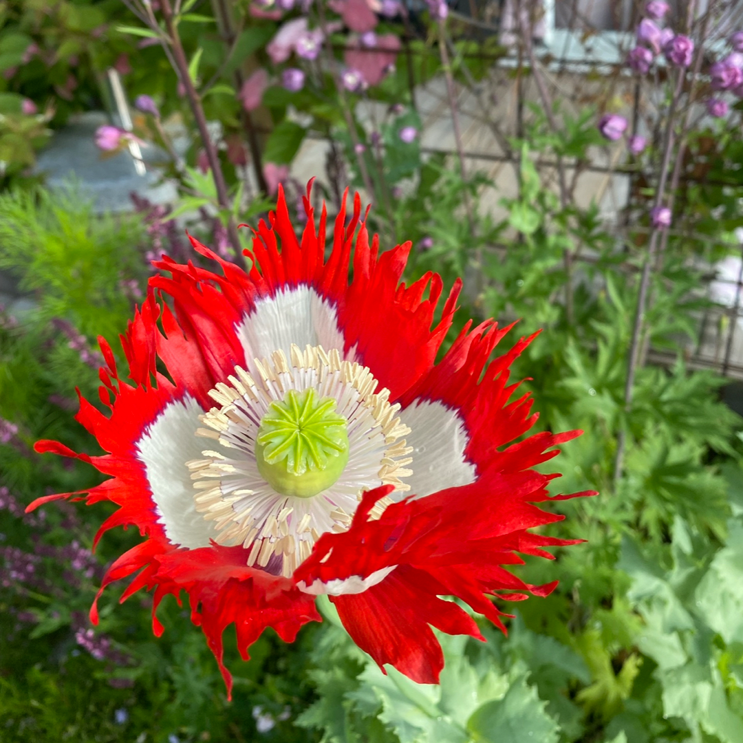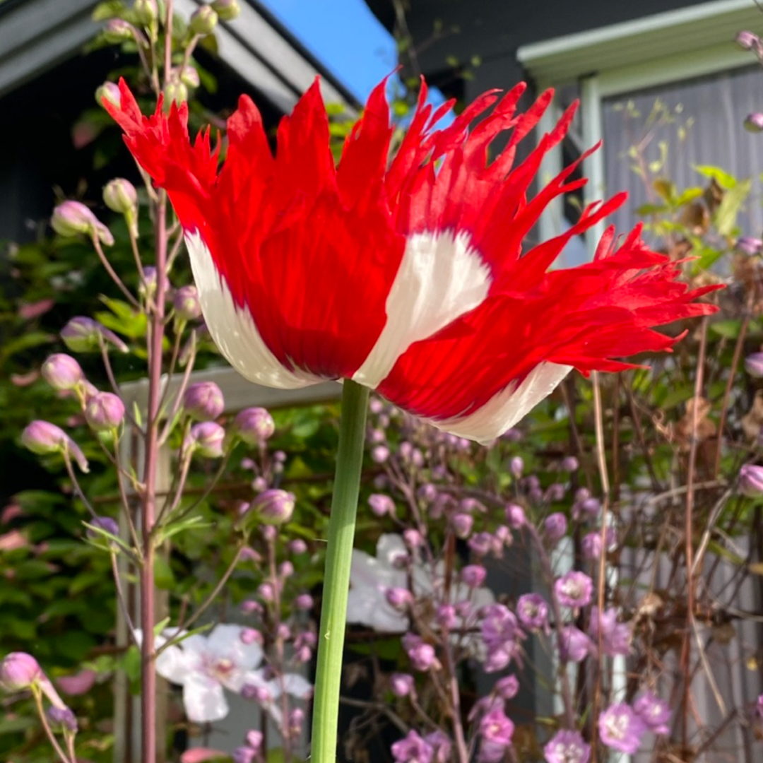En härligt röd vallmo som blir drygt 60cm hög. Fjärilar och bin älskar denna blomma!