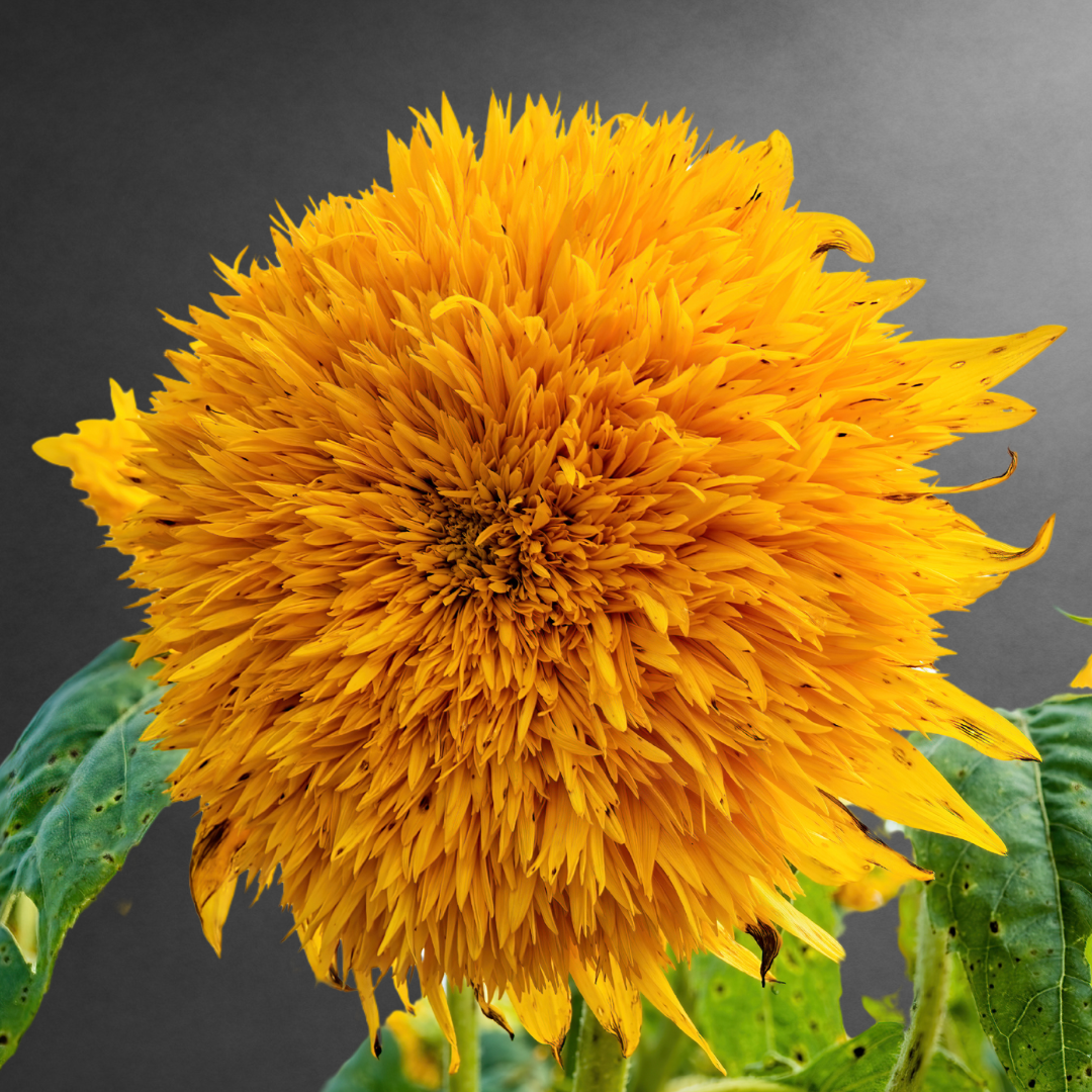 Det som verkligen gör "Sungold Tall" solrosen till en trädgårdsskatt är dess imponerande blomställningar. Sittandes på toppen av robusta, välformade stammar, är dessa blommor naturens egna konstverk. Varje blomhuvud är en fest för ögat, med tusentals små, tätt packade stråblommor som bildar en levande solgul pompom. De ger en närmast hypnotiserande effekt när de gungar i sommarbrisen.