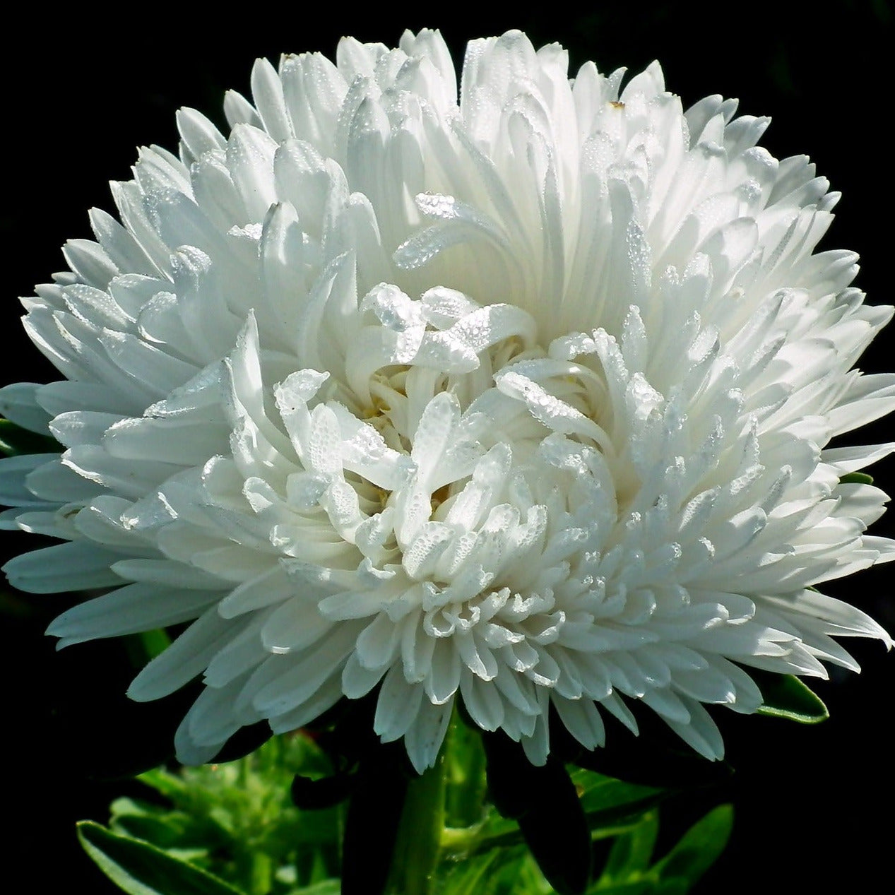 En fantastisk snövit pionblommande sommaraster. Utmärkt för både rabatt och snitt.